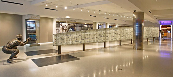 En el Museo de los Yankees, en las entrañas del Yankee Stadium, dos esculturas están separadas por una delicada lámina de acrílico transparente que emula la estela imaginaria que dibuja una pelota en su recorrido, desde que sale de la mano del pitcher hasta que llega a la mascota del catcher, sobre la cual aparecen reproducidas las firmas de los “Bombarderos” de un día memorable: Hank Bauer, Joe Collins, Mickey Mantle, Yogi Berra, Enos Masacre, Billy Martin, Jim McDougald, Andy Carey, Don Larsen y Casey Stengel.
