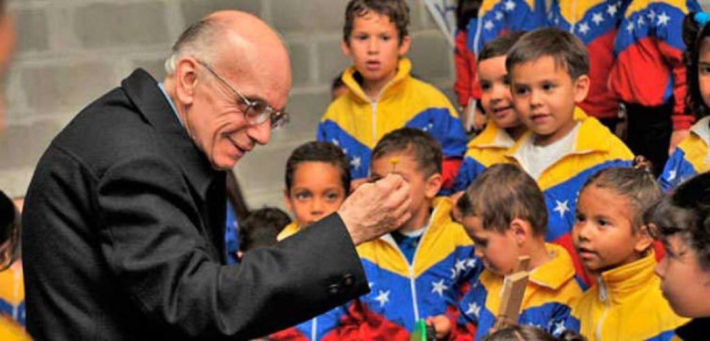 JAA: Hubo un gran sacerdote a quien yo respeté y veneré que fue el Padre José María Vélaz, Fundador de Fe y Alegría. El padre Vélaz me dijo algo un día que fue inolvidable y clave, me dijo “si estás haciendo algo bueno, para que tengas la certeza de que es realmente bueno, debe ser multiplicable, si no es multiplicable no es tan bueno”.Yo asumí esa lección, de manera pues que con tantos niños con talento en los barrios de Caracas, con tantos jóvenes en los liceos que yo veía, en los coros. En los orfeones de aquella época ya se percibían los talentos musicales, la cantidad de muchachos que tenían inmenso talento para tocar el cuatro, las maracas, la guitarra, etc. Unos querían estudiar piano, violín, entonces me di cuenta que era cuestión de multiplicar y profundizar la labor, multiplicarla en número y profundizarla, llevarla a todo el país y no solamente a Caracas y nos propusimos entonces llevar esto a todas las provincias de Venezuela y a los niños más pequeños.